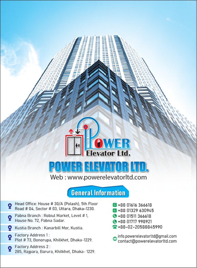Power Elevator Ltd. is a leading and trusted name in the vertical transportation industry of Bangladesh. With a strong commitment to safety, innovation, and quality, we specialize in providing complete elevator solutions including supply, installation, and maintenance services for both residential and commercial projects. Our team consists of experienced professionals who ensure every project meets international standards and client expectations. We are dedicated to delivering efficient, modern, and durable lift systems tailored to the unique needs of each customer. Over the years, our excellence in service and customer satisfaction has made us a preferred choice for many renowned clients across the country.